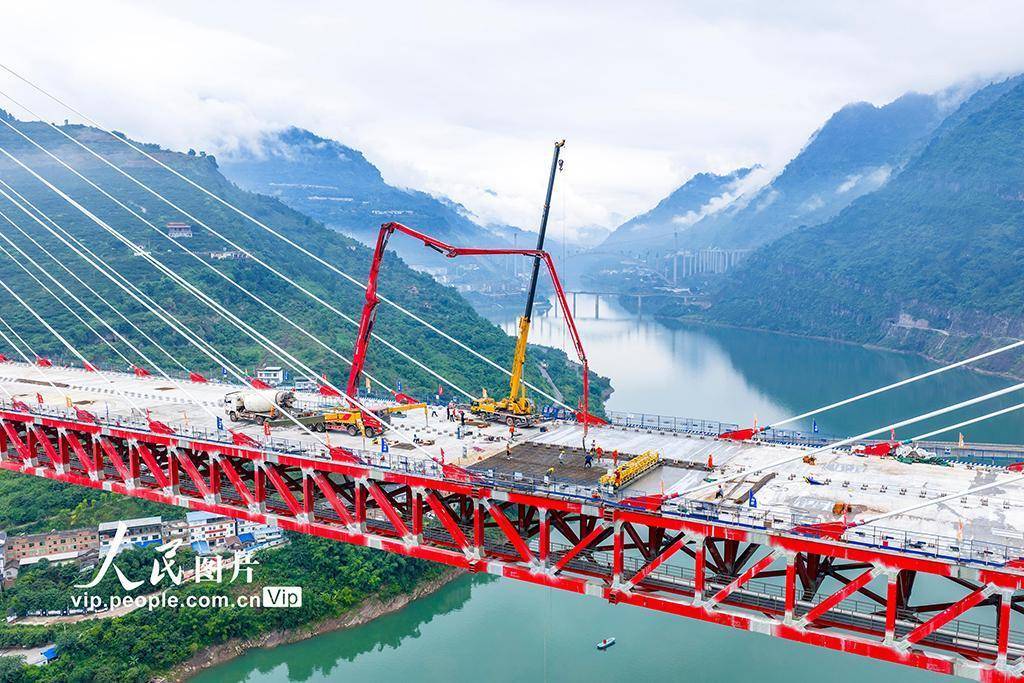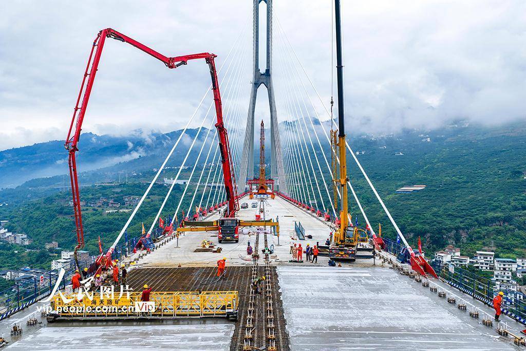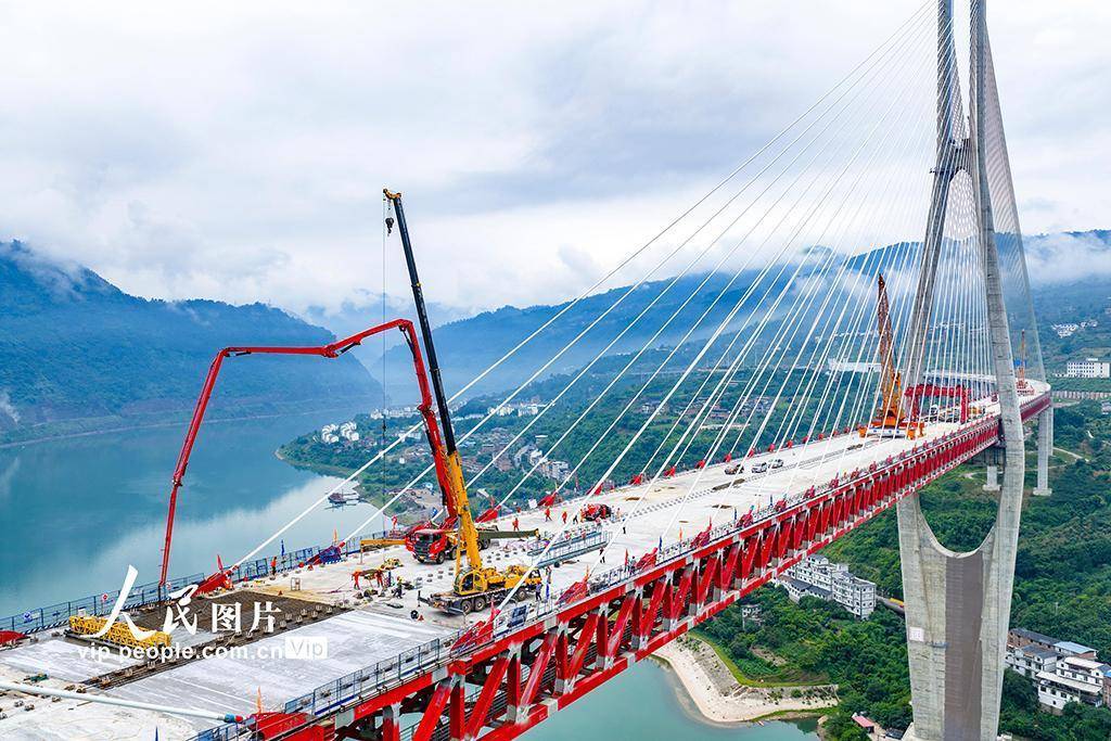 2025年9月2日,位于四川省宜宾市屏山县和云南省昭通市绥江县交界处的新市金沙江特大桥桥面结构基层顺利贯通。