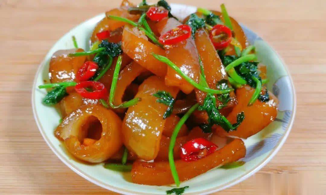 我妈总说:"吃猪皮能补脸皮",以前觉得这是老一辈的迷信。上个月去乡下大姨家,她家灶台上永远飘着炖猪皮的香气,六十多岁的人皮肤比我这个天天敷面膜的还紧致。处理猪皮其实特别简单:买回来的猪皮先用镊子拔干净杂毛,冷水下锅加葱姜料酒焯十分钟。这步可别偷懒啊!焯过水的