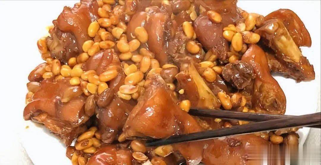 热锅凉油把冰糖炒出焦糖色,猪蹄倒进去"噼里啪啦"裹上琥珀色。这时候八角桂皮香叶往锅里一撒,香味"噌"地就冒出来了。泡发的黄豆这时候和猪蹄一起下锅,加开水没过食材,小火慢炖两小时。我每次炖这锅都馋得慌,掀开锅盖的瞬间,颤巍巍的猪蹄挂着亮晶晶的汤汁,黄豆吸饱了肉香,连汤汁拌饭都能吃三碗!
