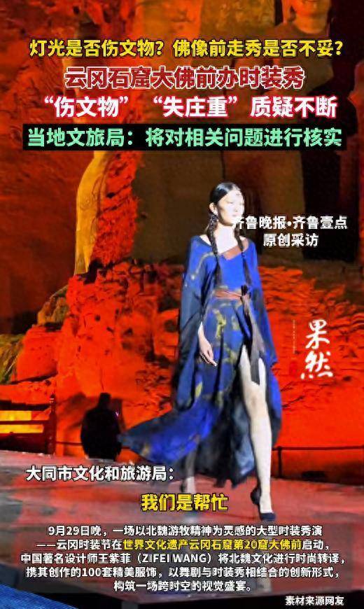 犇牛宝配资 云冈石窟大佛前办时装秀引争议,网友质疑“灯光是否会对文物造成伤害”,当地文旅局:将对相关问题进行核实 犇牛宝配资 来源:金狮牛配资官网 网站:新宝策略 日期:2025-10-18 13:32:44 查看:121