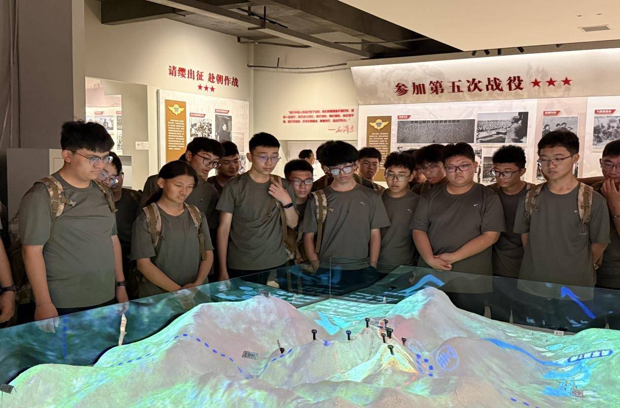 “每一寸阵地的坚守,都饱含着鲜血与生命的付出,这是付出巨大牺牲和代价赢得的和平!”军休干部沙永金结合抗日战争与抗美援朝战争上甘岭战役英雄事迹,为“军晖班”学子生动讲述了中华民族凭借钢铁意志抵御强敌、捍卫阵地的感人故事,以及革命先辈在烽火硝烟中不畏生死、前赴后继的英雄情怀。上甘岭战役留下的有381个弹孔的战旗、志愿军老前辈的跳伞作战用具、“一个苹果的故事”坑道场景……站在“上甘岭特功八连”荣誉室,大家仿佛置身炮火连天的战场。