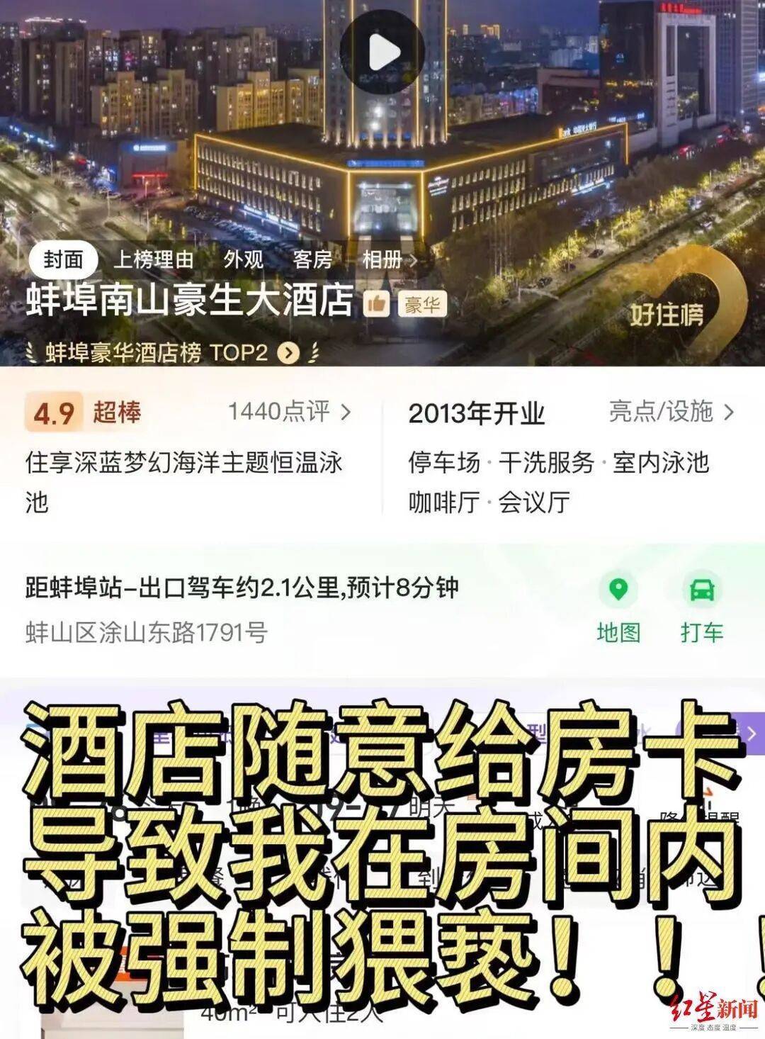 9月27日,蚌埠南山豪生大酒店人员称其诉求已交由法务处理。法务称,酒店曾在陈女士帖子下回复道歉但后被删除,将与酒店沟通陈女士诉求。