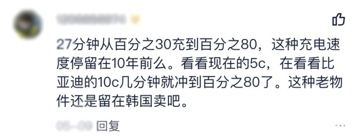 而且虽然EO羿欧身具800V平台,但在充电速度上并没有表现出亮眼的成绩。据悉,EO羿欧从30%充到80%需要用时27分钟,而比亚迪、小鹏汽车等自主车型已经将这个时间拉低至15分钟,这让网友直呼EO羿欧是“老物件”。