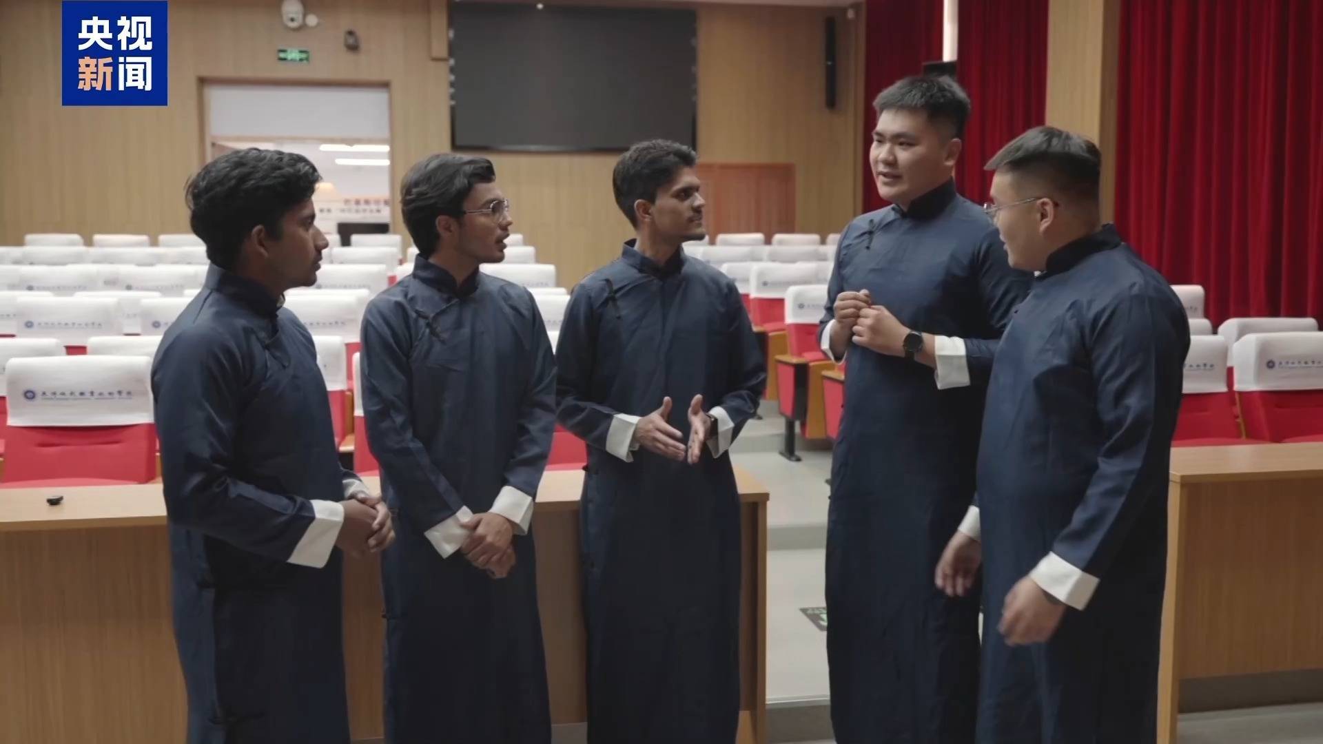 不仅是学习专业技能,乌马尔来到天津后,最喜欢的就是听相声,他自告奋勇加入了学校的相声社。